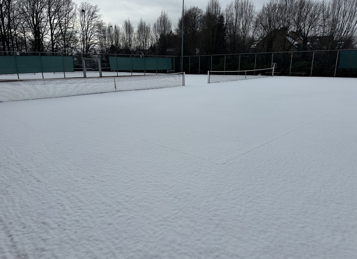 Zolang er sneeuw ligt zijn de all weather banen onbespeelbaar.