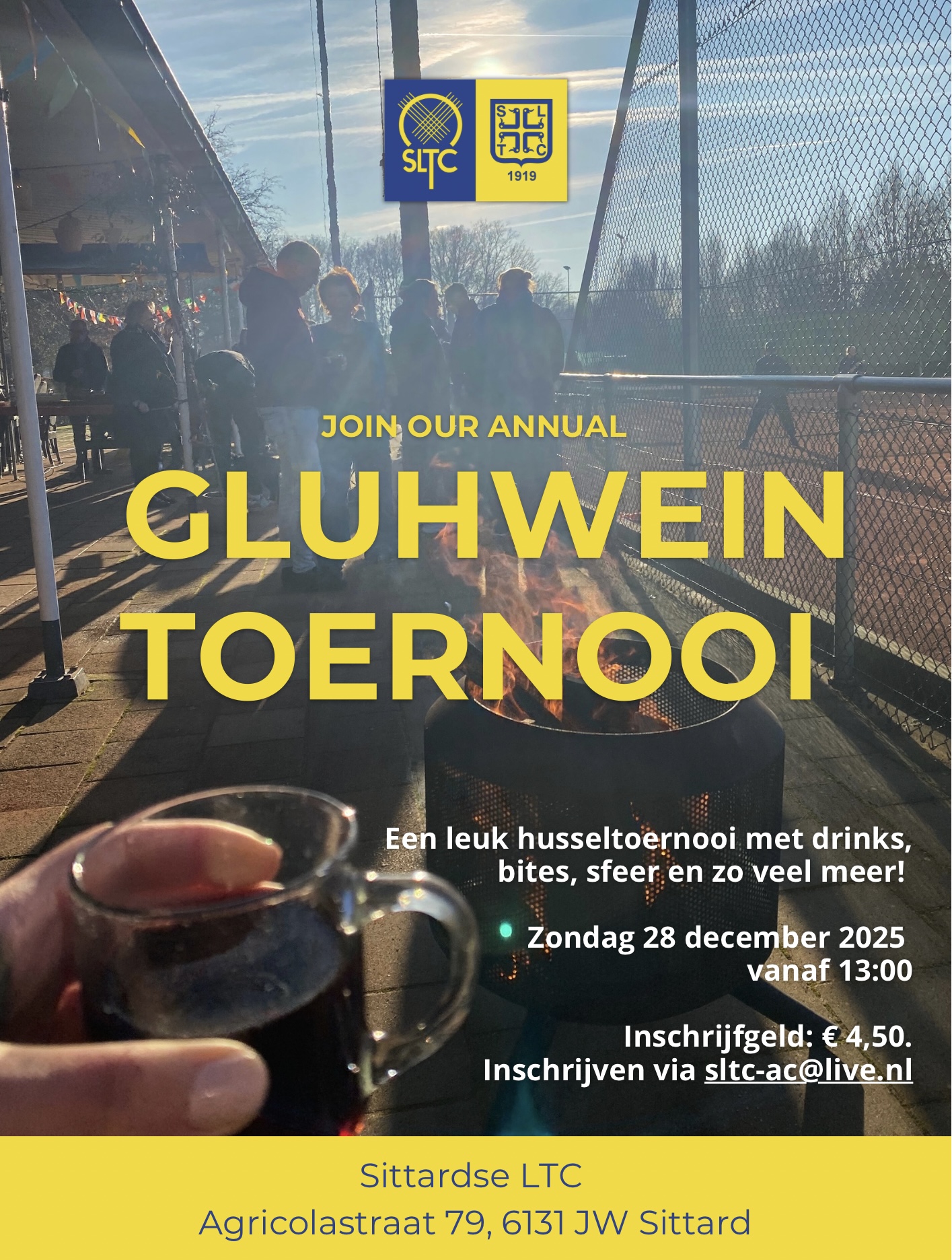 Op zondag 28 december 2025 nodigen we je van harte uit voor ons jaarlijkse Glühweintoernooi bij SLTC! Een heerlijke afsluiter van het jaar waarin sportiviteit en winterse gezelligheid samenkomen.